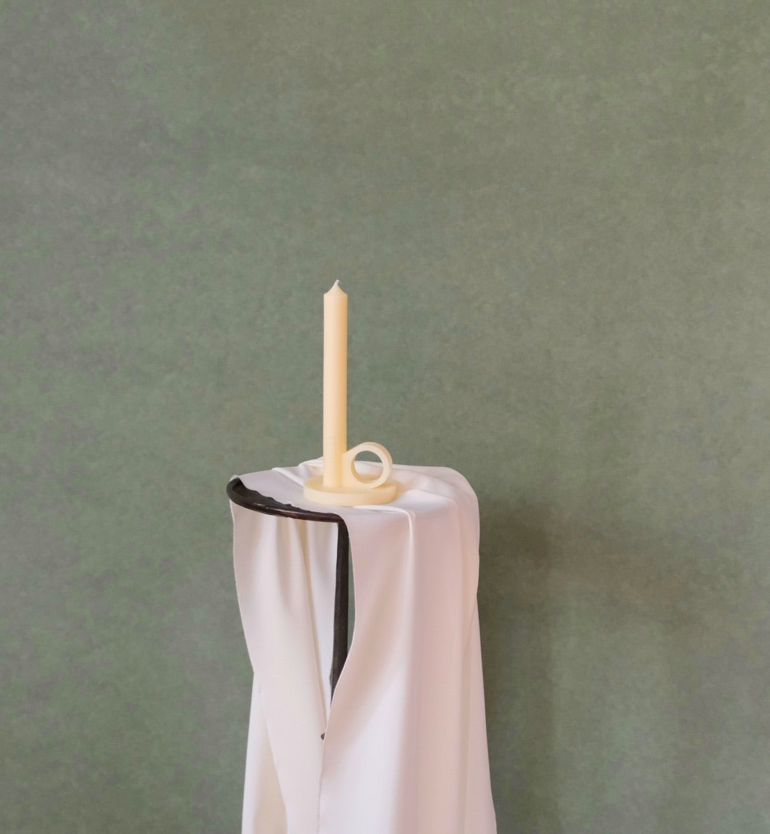 Candelero de cera en color blanco roto, un precioso diseño para iluminar tu mesa de verano a la luz de las velas y un excelente y original regalo para llevar a una cena.